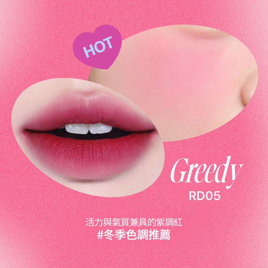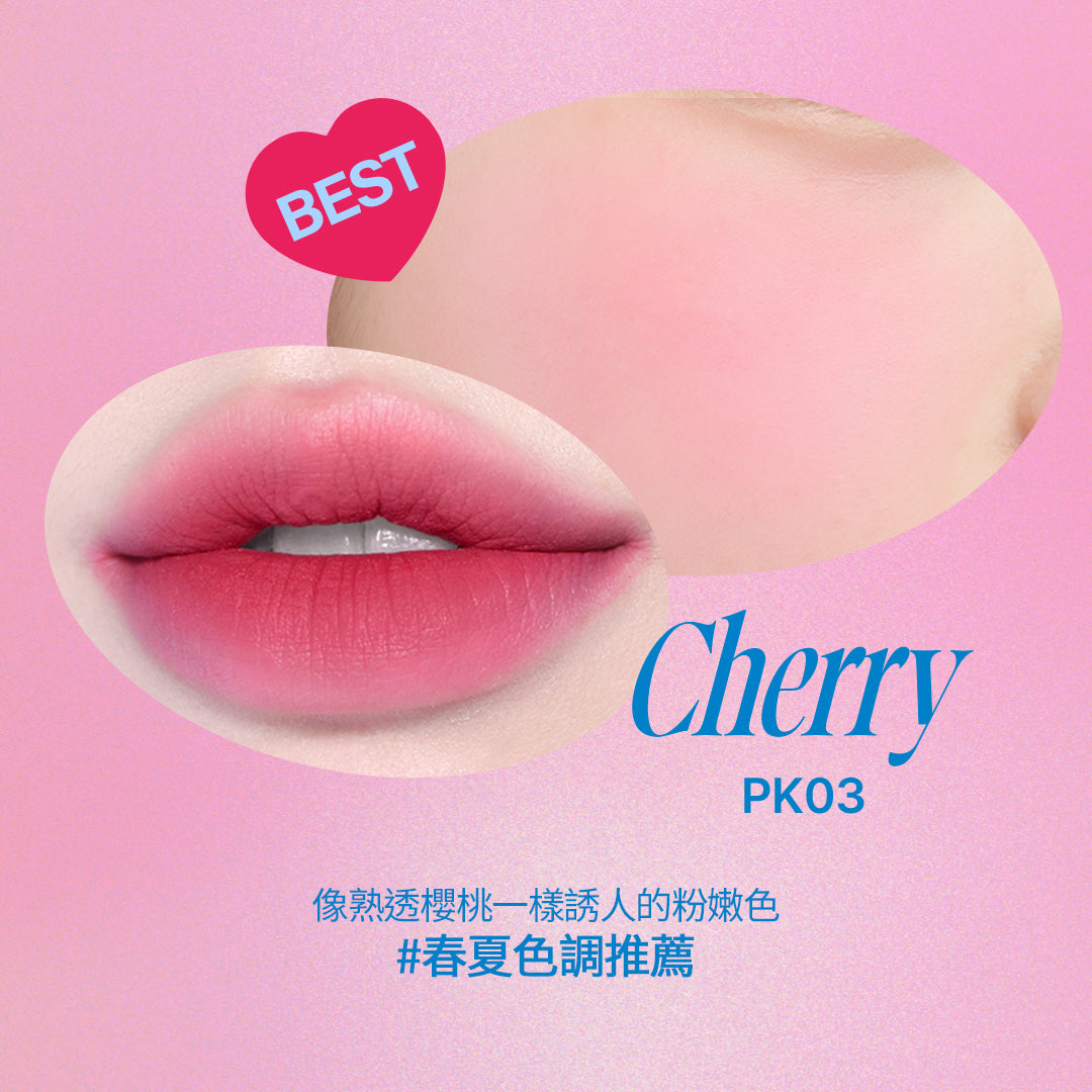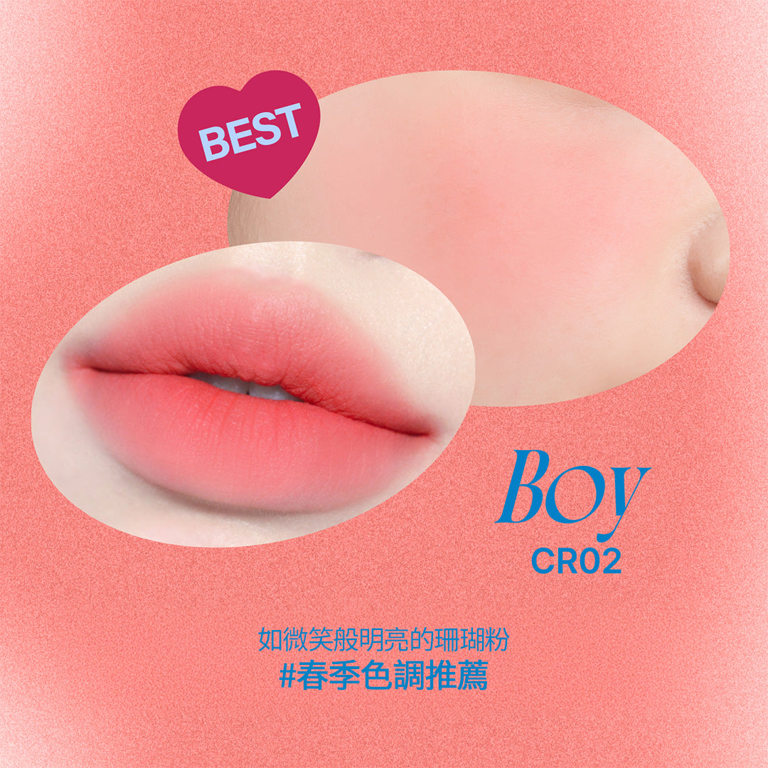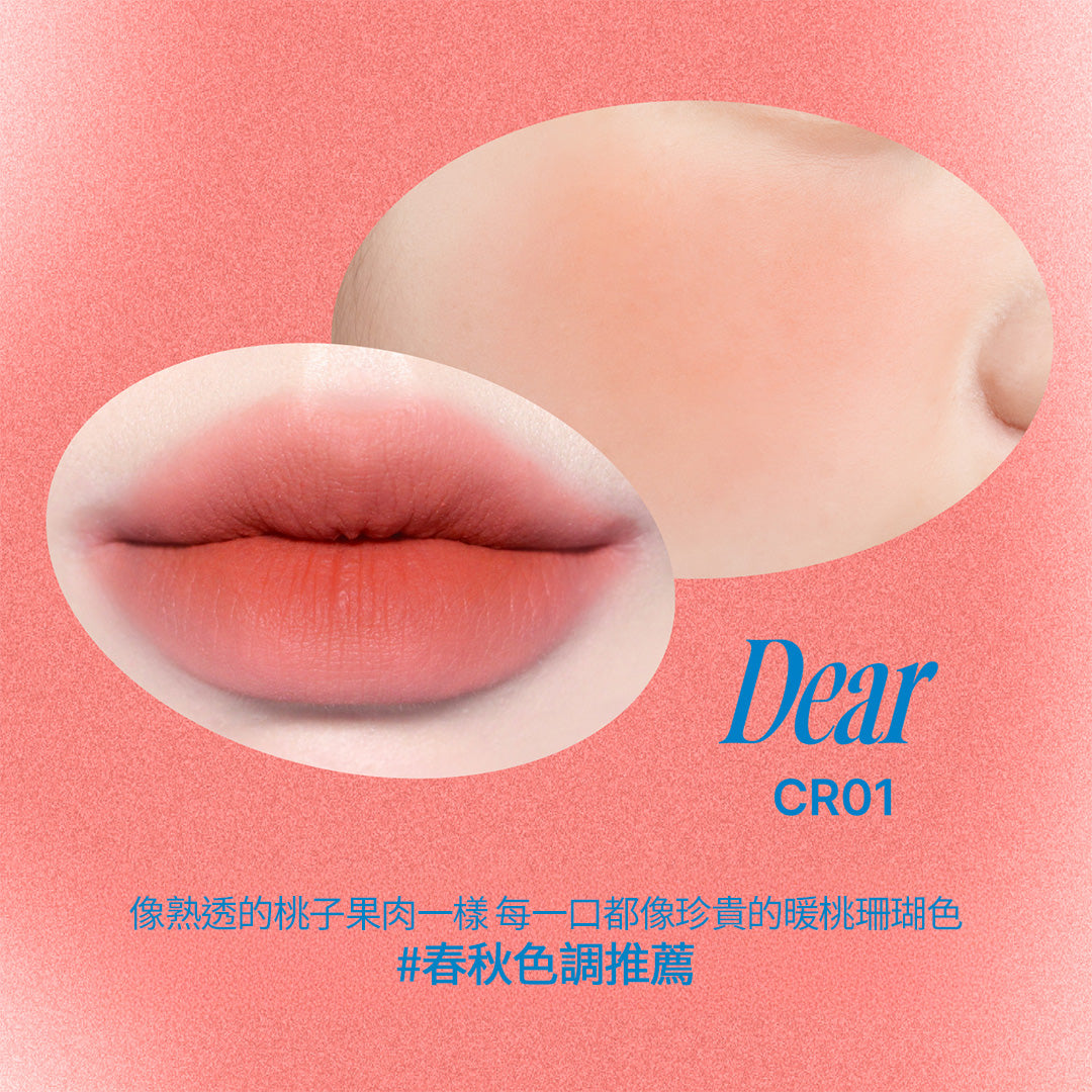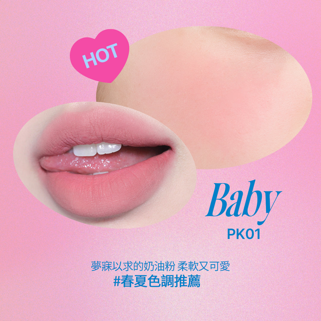 NO.1 經典商品共7個色系35種顔色,軟軟霧霧新概念質地,水潤自然暈染效果,不顯唇紋、不卡色,一抹完成口紅到腮紅。
